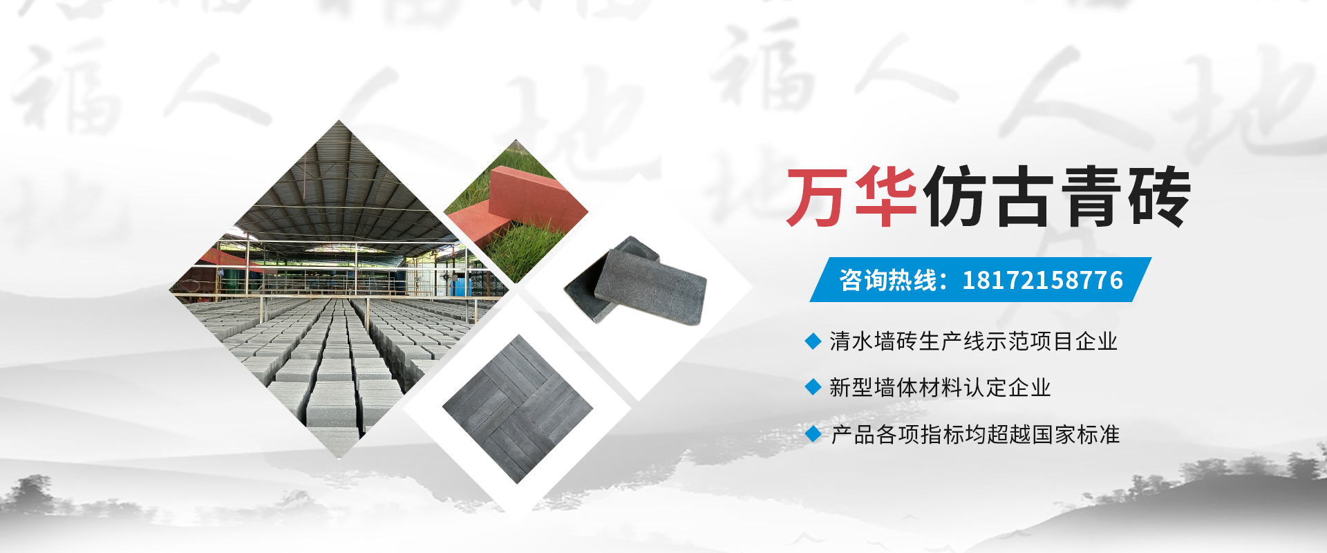 桂林市萬華環(huán)保材料有限公司,是一家專注生產(chǎn)和銷售古建仿古青磚的免燒免蒸環(huán)保制磚高企業(yè),公司位于風(fēng)景秀麗、山水甲天下的桂林市經(jīng)濟(jì)技術(shù)開發(fā)區(qū)。 公司是廣西壯族自治區(qū)清水墻磚生產(chǎn)線示范項目企業(yè)、廣西壯族自治區(qū)新型墻體材料認(rèn)定企業(yè),產(chǎn)品認(rèn)定證號:桂ZJQ220190237。 新型仿古青磚生產(chǎn)工藝成熟高效,產(chǎn)品采用純凈石粉+專用固化劑+液壓制磚機(jī)壓制成型。公司生產(chǎn)線已于2019年實(shí)現(xiàn)...